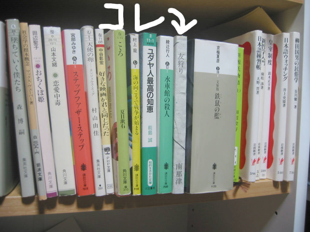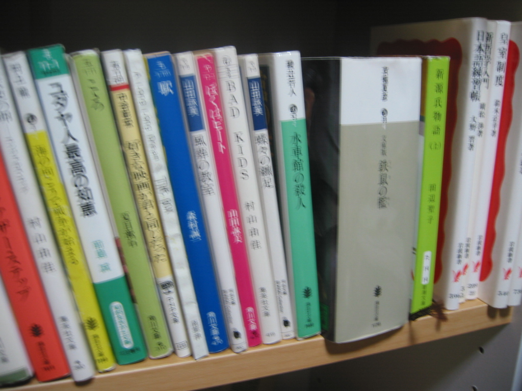 - また大御所の間に並べてみたけど、ピンぼけ写真だ。青い背表紙の本の左