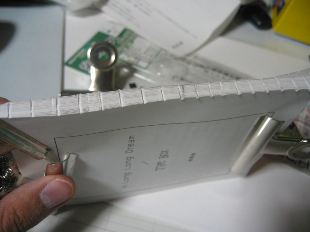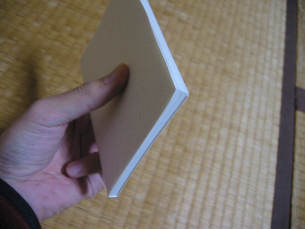 しばらくして、解放してやると、おうおう、本になってる。やっぱり粘着弱いけど、ページが抜ける様子もないし。でも、セメダインの黄色がちゃんと残ってる。今度はちゃんとボンドを買ってこよう。
