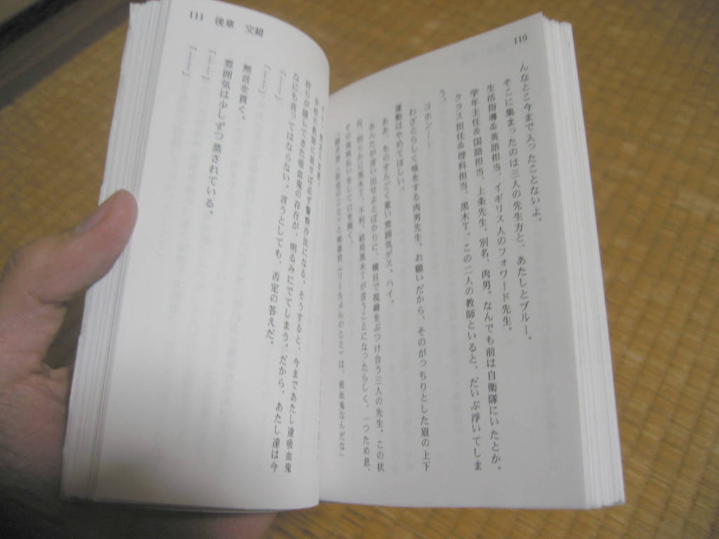 全然違う話。ただいま、京極夏彦二冊目読書中だが、なかなか進まない。よってこの本を挟んだ。京極夏彦は読み切るまでに、いろいろ本挟まなくちゃいけなさそう……。