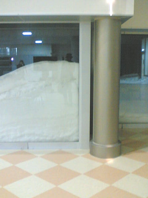 大学が山の中なもんで、連日の雪で埋もれ始めた。一番酷かったところを写真に撮ってみる。っっ! 新設の自然科学研究科の建物は大学に見えない!