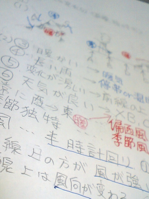 理科二分野天気の復習の授業。Aクラスは応用問題解説しても、おぉ、自力で解けてらっしゃる。Bクラスは標準問題完璧にさせないと次進めないの分かってるので、まずそれをひたすら攻略させるため応用まで扱えず。Cクラスは基礎+標準レベルでそれなりに楽しい。