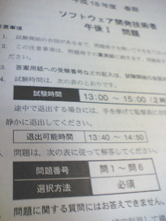 もうこの試験を受けるのも三回目だと思うと、なにとなくしみじみする。けれども受験者層の中ではまだ若い方。学部の連中の多くはまだ一個下の基本情報処理技術者受けてる訳だし。もとい、自分は見目が若くないのだが。